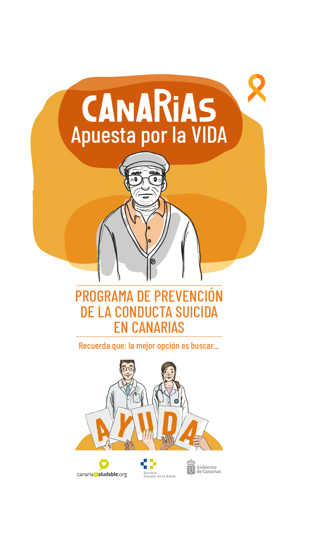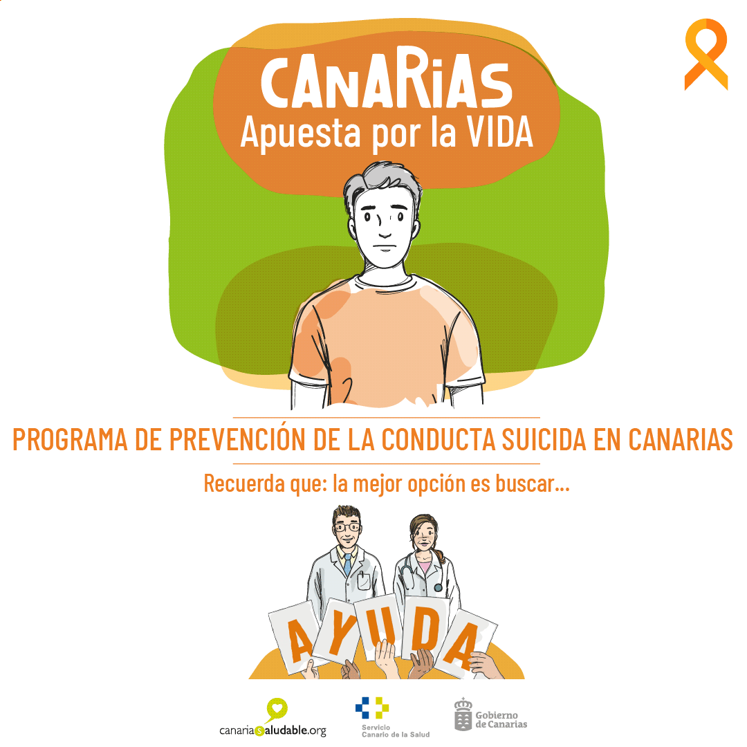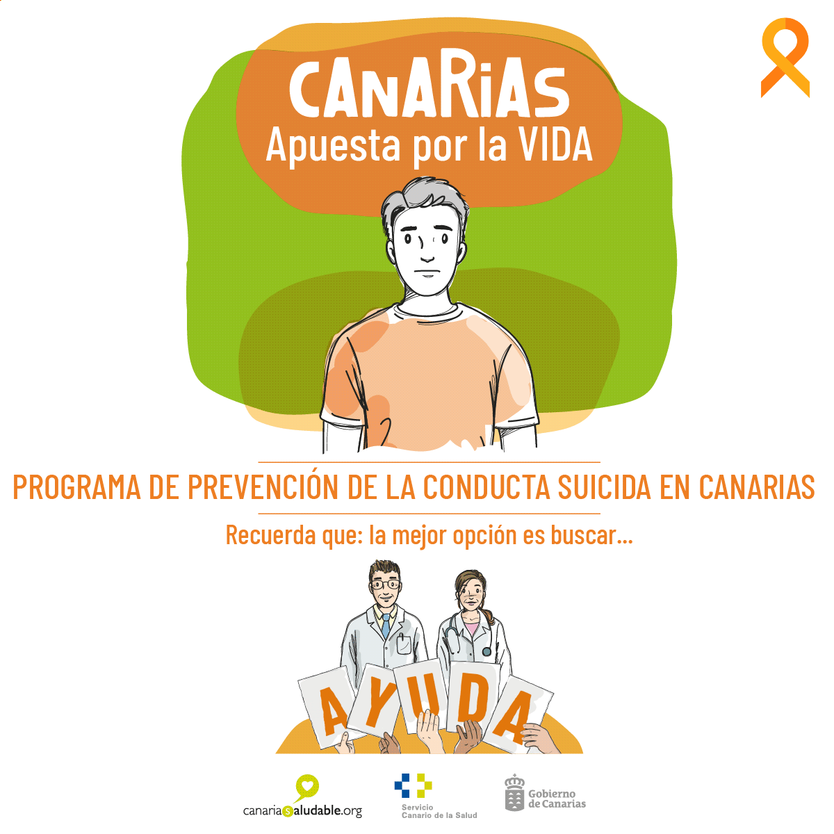 En Canarias, se hizo coincidir en fecha la presentación del Programa de Prevención de la Conducta Suicida en Canarias (gobiernodecanarias.org) con el Día Mundial de la Prevención del Suicidio 2021, y con la campaña que lleva por lema “Canarias apuesta por la VIDA”.